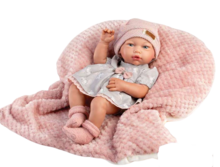 Maak kennis met Claudia, een liefdevolle klassieke babypop van het Spaanse merk Guca. Deze pasgeboren babypop is prachtig gekleed in een stijlvol jurkje in grijs en roze tinten, met een zacht gebreid mutsje en een bijpassend dekentje om haar lekker in te wikkelen. Claudia straalt tederheid uit en is perfect voor jonge kinderen die graag spelen, verzorgen en knuffelen.