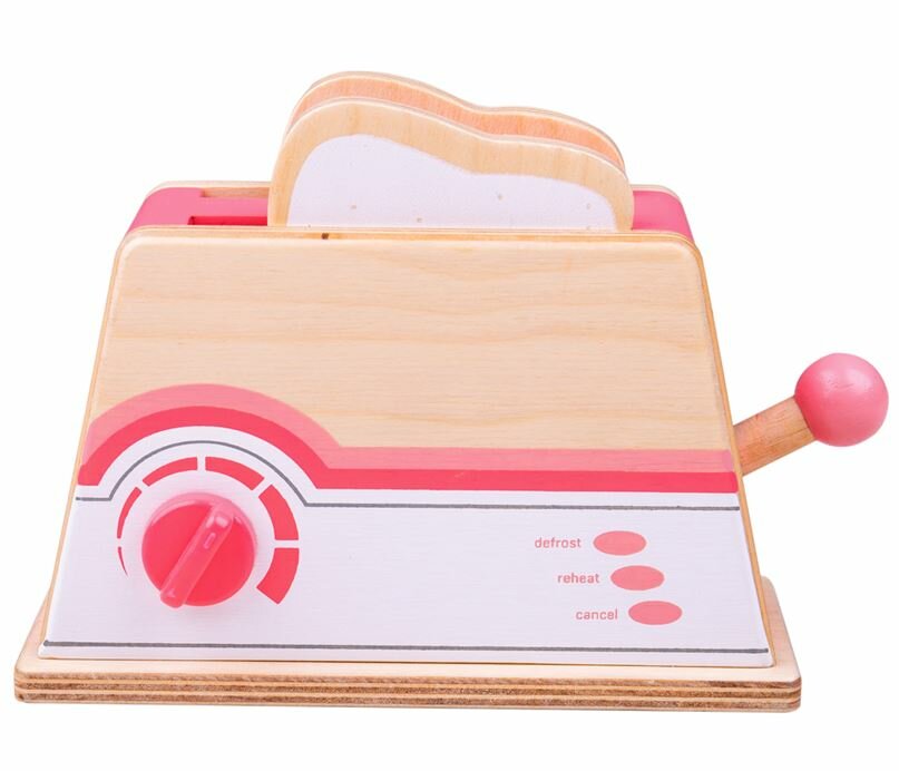 Het is tijd voor toast met de Bigjigs Toys houten broodrooster, een geweldige aanvulling op de houten speelkeuken. Plaats de houten sneetjes brood in de broodrooster, en draai vervolgens de draaiknop naar de gewenste instelling. Kiest je kind voor het licht geroosterd of goed gedaan brood? Er is een instelling voor ieder wat wils! Pop het brood vervolgens omhoog zodra het klaar is!  Stimuleert creatieve en fantasierijke rollenspelen. Gemaakt van hoge kwaliteit, op verantwoorde wijze geproduceerde materialen.