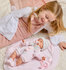 Deze prachtige pop kan echt huilen en om papa en mama roepen. Dit geluid kan uiteraard ook uitgezet worden. Joelle heeft een heerlijk warm knuffelpakje aan. Op haar kleed kan ze heerlijk liggen spelen en slapen. De pop wordt met speen, muts, sjaal en kleed geleverd. Let op: De speen past gedeeltelijk in de mond van de pop