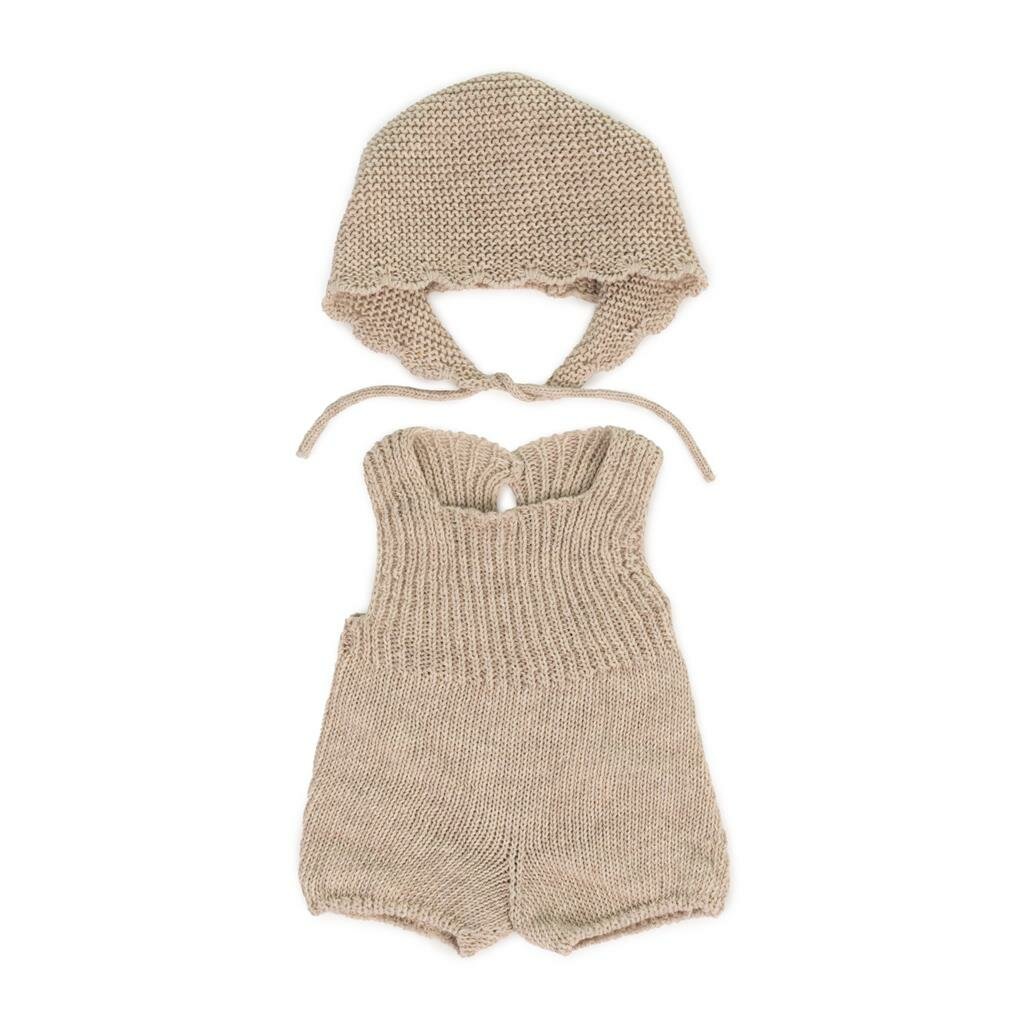 Gebreid beige kruippakje voor poppen 38 cm (2 delig)