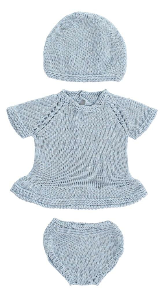 Gebreid kledij set blauw voor poppen 40 cm (3 delig)
