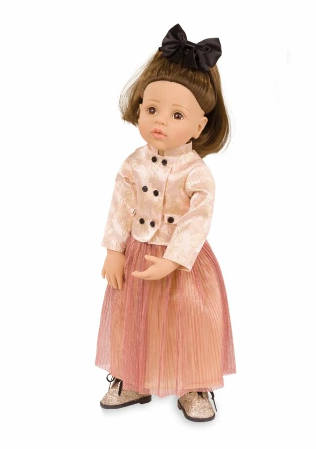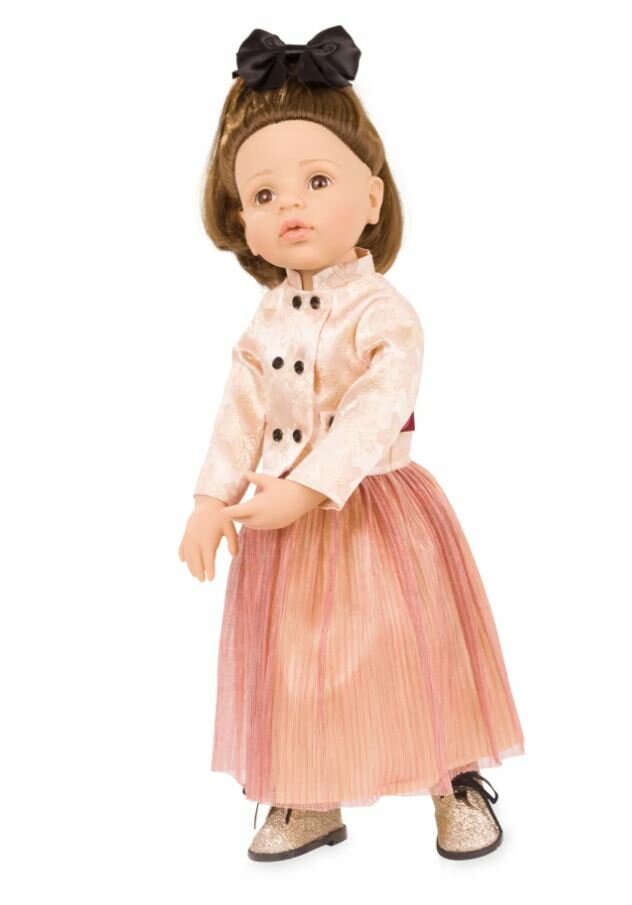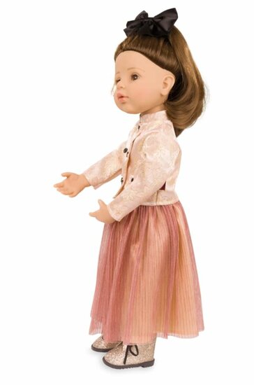 Ter ere van het 75-jarig jubileum van Götz presenteren wij met trots de exclusieve Happy Kidz Greta - jubileum. Ze draagt een luxe brokaatblazer, een glinsterende geplooide rok, fonkelende laarzen en een elegante haarstrik. Deze gelimiteerde editie combineert uitzonderlijke kwaliteit met stijlvolle elegantie en nauwkeurig vakmanschap – een buitengewoon verzamelobject voor veeleisende poppenliefhebbers.