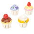 Een set van vier, handgeschilderde en individueel gedecoreerde houten cupcakes met een finishing touch van goudverf. Gepresenteerd in een zoete geschenkdoos. Een ideaal accessoire voor de Honeybake Tea-Time Party. Deze houten cupcakes zijn gemaakt van duurzaam rubberhout en versierd met niet-giftige verf en getest volgens de hoogste veiligheidsnormen. Kortom deze set is een geweldige toevoeging aan de Honeybake fantasiespelcollectie.