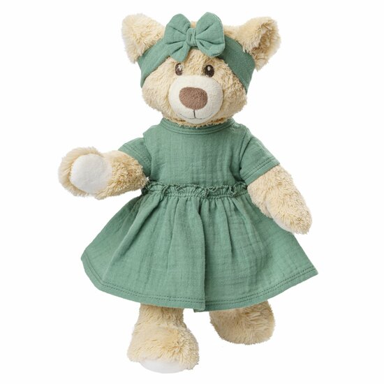 Variatie: Jurk met ruches en haarband saliegroen (35-45cm)