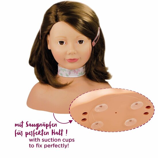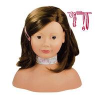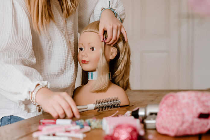 Met deze stylingkop of kappop kun je haren in model brengen en de pop opmaken precies zoals jij wilt. Als je de stijl wilt wijzigen, maak je eenvoudig een nieuwe stijl aan. Haar hoogwaardige haar is duurzaam en gemakkelijk keer op keer te stylen. Deze stylingkop wordt geleverd met een breed scala aan haarclips, haarelastiekjes en make-up, zodat je eindeloze mogelijkheden hebt. Als je jezelf 's avonds voor het slapen gaan wast neem dan gelijk je stylinghoofd mee om ook haar make-up te verwijderen. Nu heeft zij morgen ook weer een schoon gezicht en kunnen jullie weer heerlijk samen verder tutten. Deze pop zal jarenlang plezier bezorgen.
