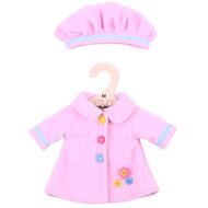 Deze kledingset bestaat uit een roze jas met muts, geschikt voor onze 34/35 cm Bigjigs lappenpoppen. Deze kledingset wordt compleet met bijpassende muts geleverd!