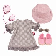 Zonnestralen kietelen je neus? Ga en bereid je voor op je zomeruitje. Wat dacht je van dit chique jurkje in ruitmotief met franjes aan de rand?! Gecombineerd met een vissershoedje met fijne bloemenprint, coole zonnebril en espadrilles is deze combo een perfecte zomeroutfit voor je pop.