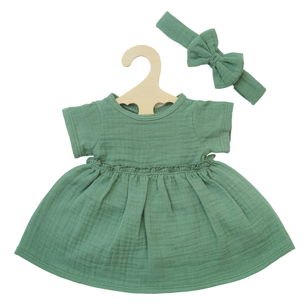 Kledingset Jurk met ruches en haarband saliegroen (28-35 cm)