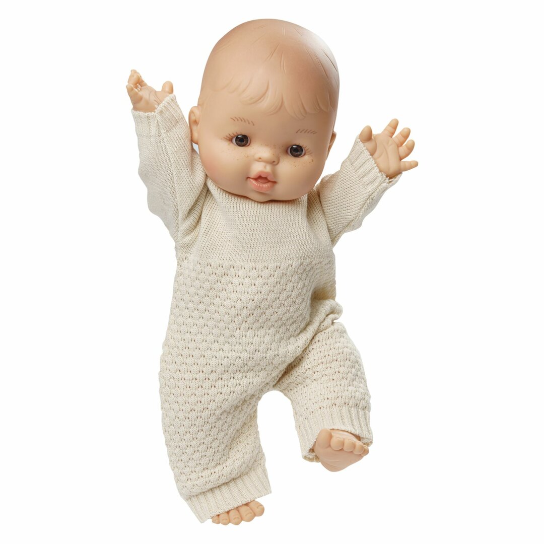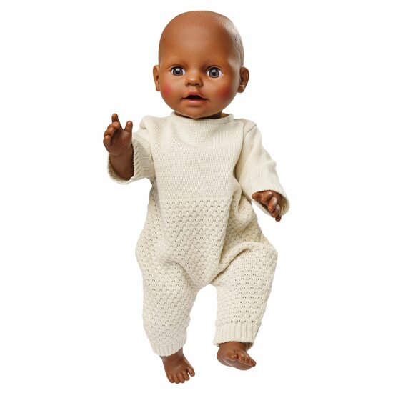De gezellige poppenromper van Heless, gemaakt van 100% biologisch katoen, houdt je pop warm en comfortabel, zelfs op koude dagen. De gebreide stof, afkomstig uit gecertificeerde biologische teelt, is zacht ecru van kleur en geeft je een volledig goed gevoel. Het materiaal is heerlijk zacht en kriebelt helemaal niet. Daarnaast is de stof elastisch, zodat de romper perfect aansluit op het lichaam van je pop. Het tijdloze en eenvoudige ontwerp met twee breipatronen maakt de romper tot een modieuze eyecatcher.