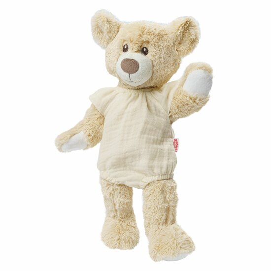De zachte mousselinestof is afkomstig uit gecertificeerde biologische teelt en biedt veilig en onbeperkt speelplezier met je pop. De mooie ruches op de schouders en de losse pasvorm maken het tot een absolute blikvanger.