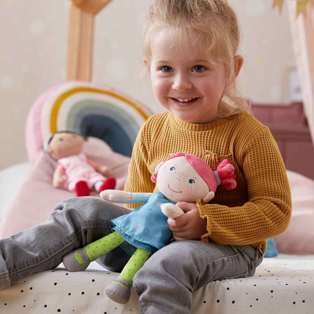 Maak kennis met Philine, een charmante lappenpop van HABA die kinderen meteen in hun hart zullen sluiten. Met haar zachte materialen en vrolijke uitstraling is Philine de perfecte speelkameraad én knuffelvriendin.