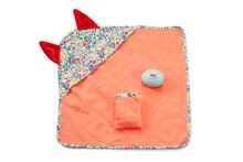Met dit badsetje heb je alles in huis om jouw babypop een heerlijk badje te geven: een washandje, een zeepje en een wikkelhandd