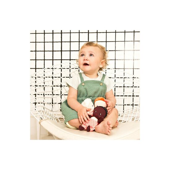 Dit popje is gemakkelijk vast te pakken voor kleine kinderhandjes. Een eerste kennismaking met het imitatiespel dat de ontwikkeling van empathie bevordert.