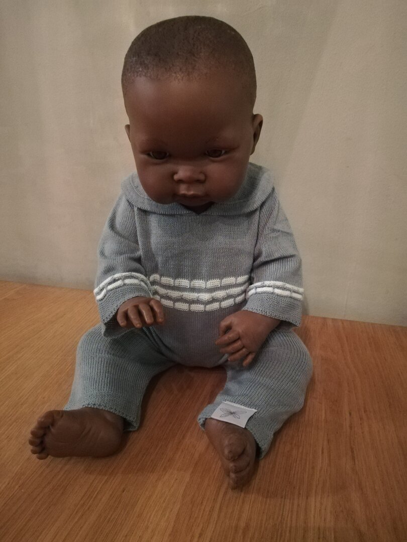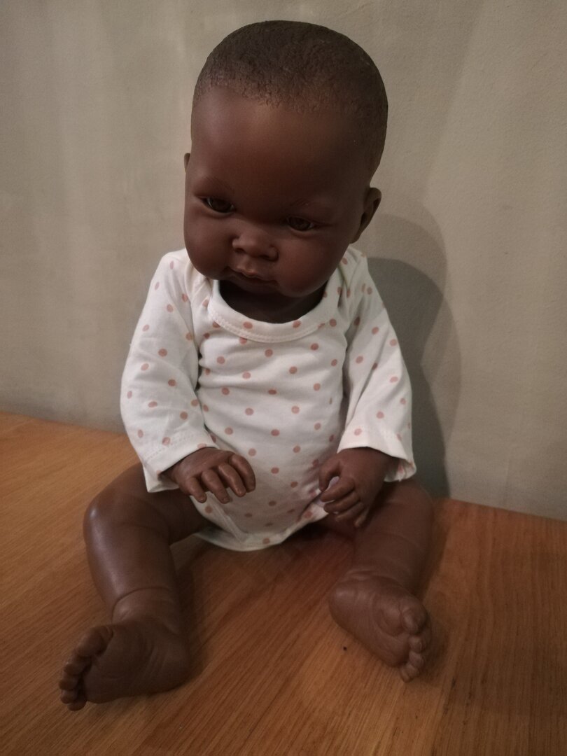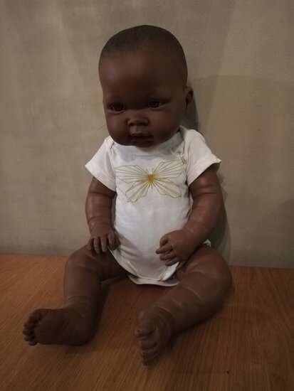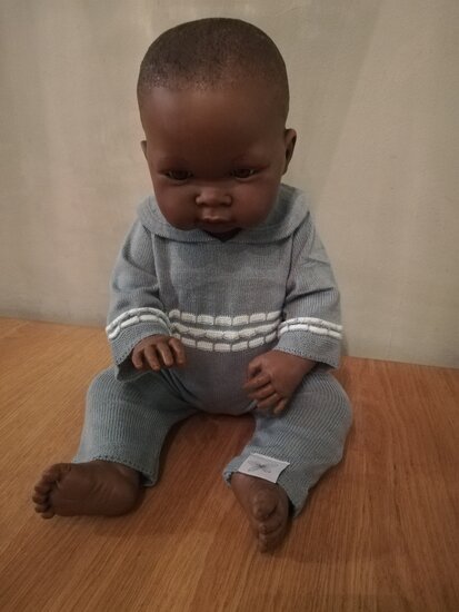 Hoera er is een jongetje geboren. Noe is een heerlijke naakte babypop van 45 cm groot met een donkere huidskleur. Deze geheel vinylen jongenspop wordt zonder kleren geleverd. De armen en benen kunnen draaien waardoor de pop ook kan zitten. Wordt deze pop jouw nieuwe vriend? Wil je gelijk kleren meebestellen? Dan raden wij de kleding van ByAstrup (45 cm) aan. Wil je ook schoenen van ByAstrup meebestellen? Bestel deze dan in maat 50.