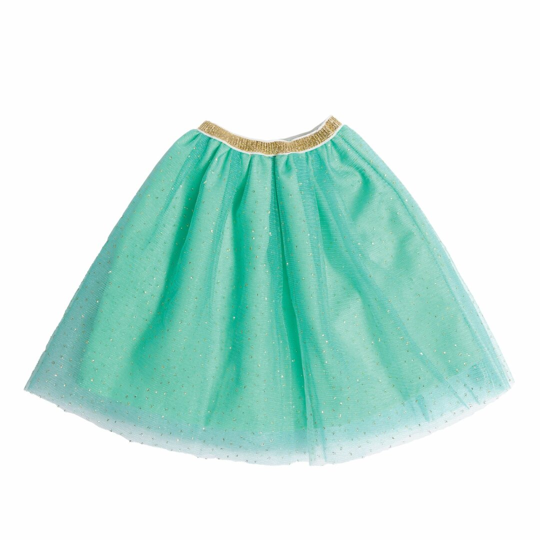In het betoverende pluche poppenjasje "Yuki" met lange glittertule rok van Heless voelt elke pop zich een echte sneeuwprinses. Het witte, pluizige jasje met geborduurde gouden sterren houdt poppen heerlijk warm en ziet er tegelijkertijd supercool uit. De volumineuze tule rok in helder mintgroen is versierd met prachtige glitteraccenten en gouden stippen. De klittenbandsluiting van het jasje en de elastische tailleband van de rok zorgen ervoor dat de outfit heel gemakkelijk aan en uit te trekken is.
