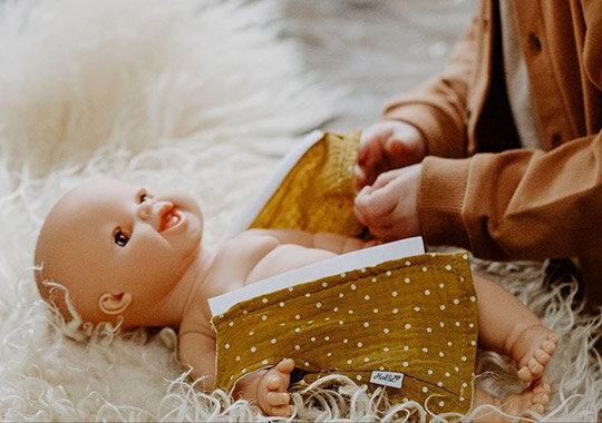 Poppenjurk Spring ochre dots (34 cm)