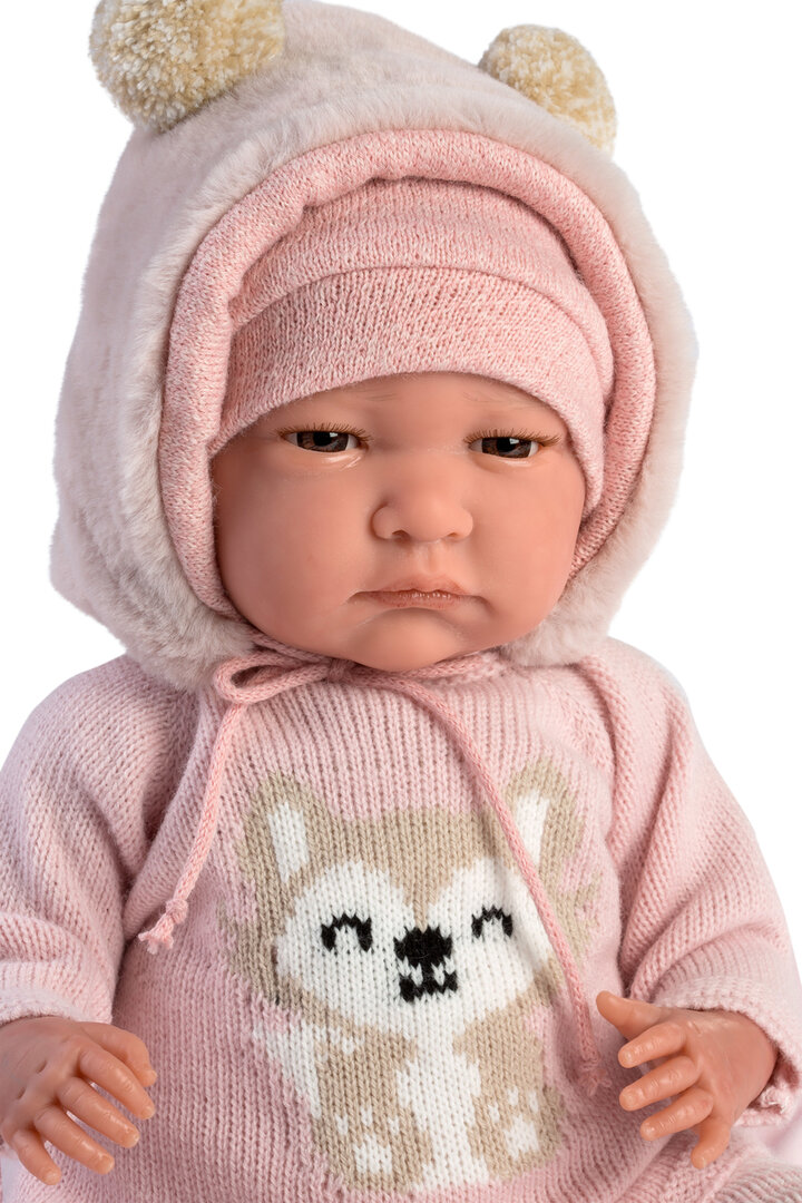 Een prachtige Reborn pop van 42 cm groot gekleed in een prachtige kledingset.  Deze babypop is zo realistisch mogelijk gemaakt met de vele kleine babyrimpels en een vertederend pasgeboren gezichtje. Ze is gemaakt van prachtig zacht aanvoelend vinyl en heeftzeer levensechte kleuren inclusief zichtbare aderen. Deze pop is volledig ambachtelijk gemaakt door de kunstenaars van Llorens in Spanje. Hierdoor zijn geen twee poppen exact hetzelfde. De pop weegt bijna hetzelfde als een echte baby en is gevuld met holle microbolletjes.