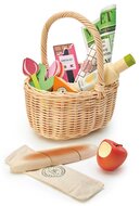 Ga winkelen net als mama en papa! Een prachtige handgemaakte rieten mand met daarin een reep chocolade, een fles limonade, een continentale salami, wat kaas, een stokbrood in een stoffen zak, drie tulpen en een takje groen. Een appel met een hap eruit, en een krant maken de mand met boodschappen compleet. Deze mand is ook ideaal om te gebruiken bij een picknick.