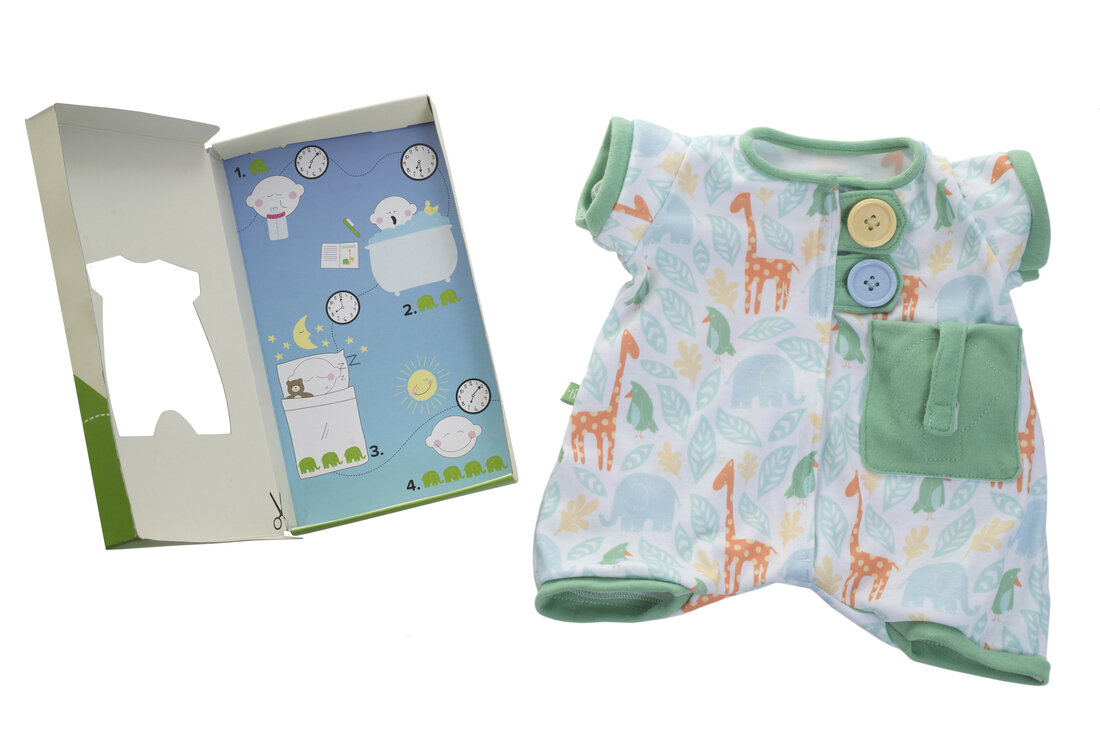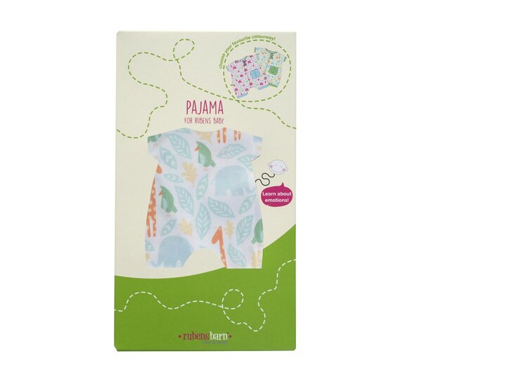 Aan de binnenkant van het doosje vindt u nog een illustratie met een leuke bedtijdroutine. Deze pyjamaset is bij uitstek geschikt voor de Rubens Barn baby poppen collectie. De afgebeelde pop behoort niet tot de leveringsomvang.