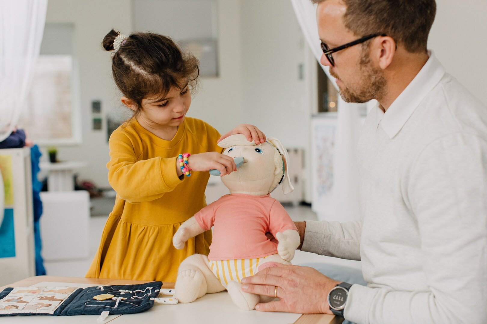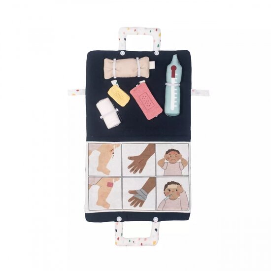 Moedig jouw kind aan om lichamelijke sensaties te identificeren met behulp van de Rubens Baby EHBO-kit. Het communiceren van pijn en andere sensaties vereist taalvaardigheid - verbaal en non-verbaal. Rollenspel is een geweldige manier om kinderen te ondersteunen bij het oefenen en ontwikkelen van communicatieve vaardigheden die ze geleidelijk in hun dagelijks leven kunnen toepassen. Het communiceren van pijn is bijzonder complex omdat het een combinatie van gedachten, gevoelens en sensaties vereist om een ​​situatie te begrijpen. Rubens Babypop accessoires zijn speciaal ontwikkeld met experts om kinderen te helpen bij het oefenen van bovengenoemde vaardigheden.