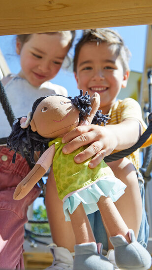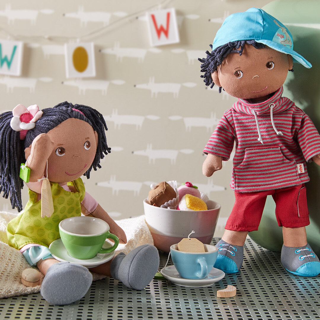 De poppen van Haba zijn heerlijk zacht  en een echt speelkameraadje voor alle poppenouders. De kleding kan, dankzij de klittenbandsluiting, gemakkelijk aan- en uitgetrokken worden. Ook zijn er leuke kledingsetjes te koop. De schoenen zijn aan het gewatteerde lichaam vastgenaaid. Dit heeft als voordeel dat er nooit een schoen kwijtgeraakt kan worden.