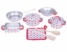 Deze tinnen pannenset is gemaakt van tin dus gegarandeerd jarenlang speelplezier. De set bevat onder meer pannen, bakblik, houten lepels en een pannenlap. Toon uw kind hoe je een aantal eenvoudige recepten kunt bereiden en u zult versteld staan met wat ze daadwerkelijk kunnen produceren. Ideaal voor het spelen van een rollenspel.